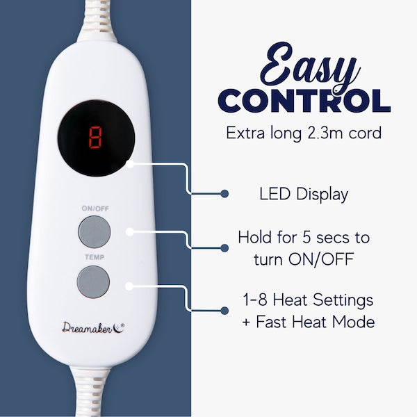 The user-friendly heating controller lets you adjust the temperature to your personal comfort level. Simply heat up on the fast heat setting (H) and then adjust from 1-8 once you reach your desired warmth. After 3 hours this heated blanket turns itself off for both safety and to save energy. If you want to use this as a regular throw, simply detach the controller cord.